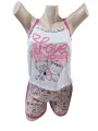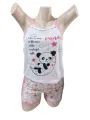 Pijama infantil 2 peças Panda Moon, feito em tecido macio e respirável para noites tranquilas e brincadeiras em casa. O top branco com alças rosa traz a fofura do panda na lua, enquanto o short com estampa de nuvens combina conforto e estilo. Cintura elástica e barras firmes garantem caimento seguro e liberdade de movimento. Perfeito para meninas que adoram conforto e desenhos fofos.