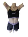 Conjunto esportivo feminino Puma, composto por Top cropped com alças finas e Short com cós elástico. Tecido leve, elástico e de secagem rápida oferece conforto, ajuste firme e liberdade de movimento para treino, corrida ou atividades diárias. Ideal para academia, pilates, corrida ou lazer.