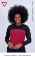 Blusa feminina de manga longa com design color-block: corpo vermelho e mangas pretas para um look moderno e versátil. Tecido macio, caimento suave e toque confortável, ideal para trabalho, estudo ou passeios. Combine com jeans ou legging para um visual casual e elegante. Disponível em diferentes cores e tamanhos. Consulte tamanhos e cores disponíveis.
