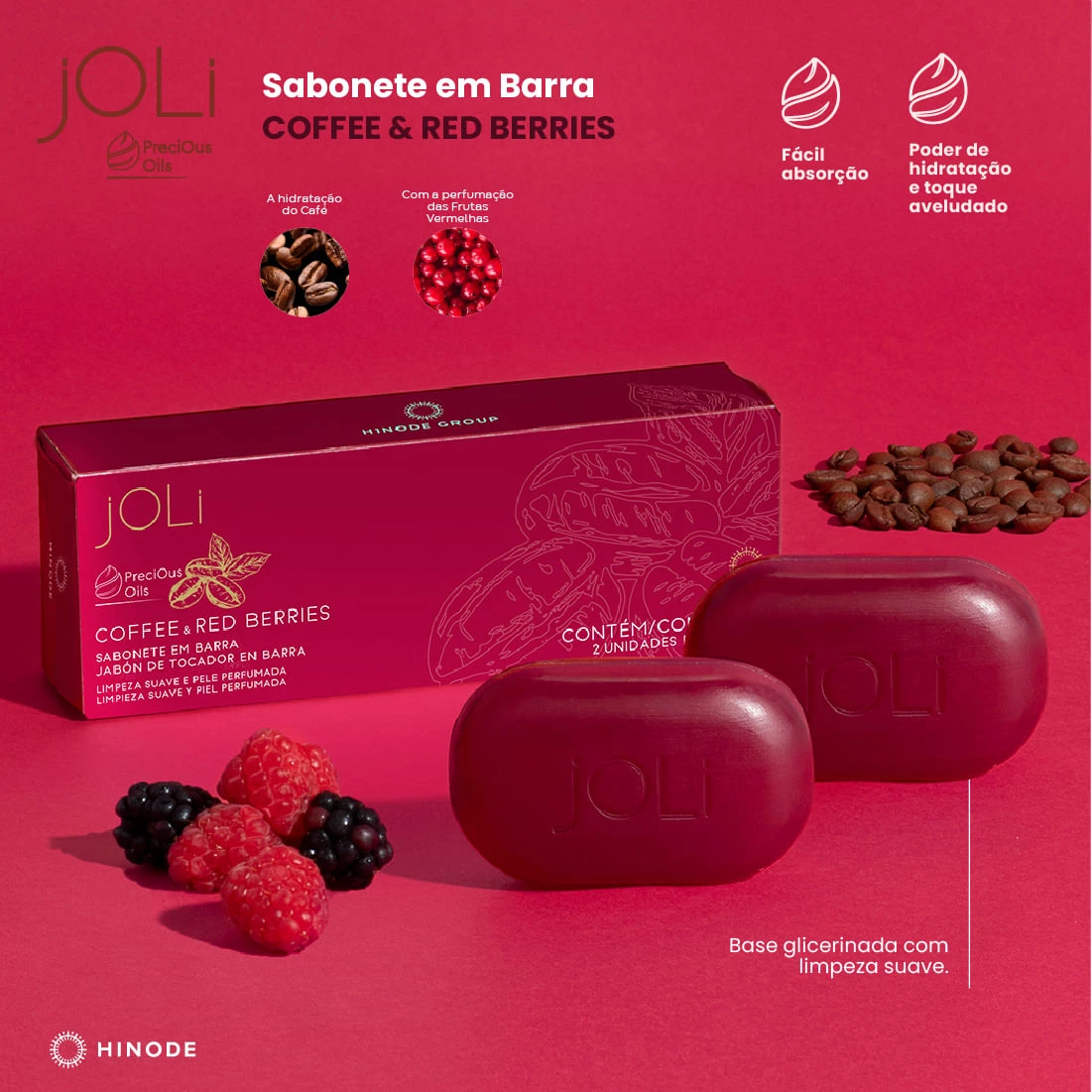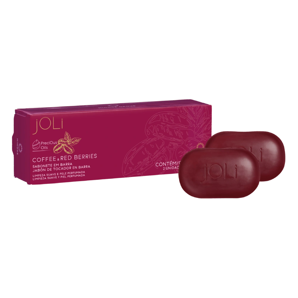 Sabonete Barra Coffee & Red Berries (2 unidades): limpeza suave e perfume envolvente para pele do rosto e do corpo. Enriquecido com óleos preciosos, mantém a pele macia e hidratada sem ressecar. Aroma sofisticado de café com notas de berries, perfeito para uso diário e aquele momento de spa em casa. Embalagem prática, ótima para presentear ou manter sempre à mão.